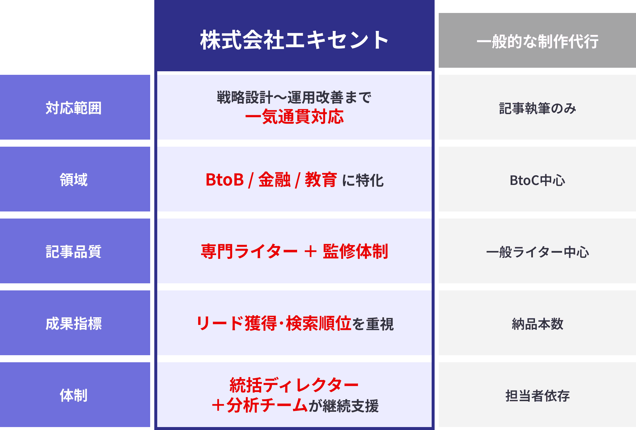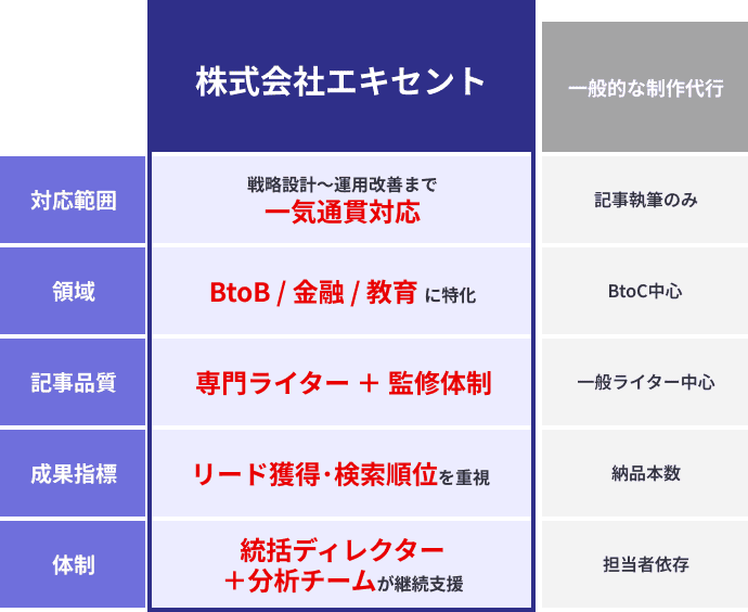 ➠︎ 戦略設計 × 専門ライティング × データ分析 で