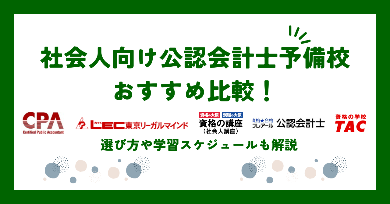 そこで、この記事では公認会計士の資格取得におすすめの予備校5選の特徴や料金を比較すると共に、社会人向けコースを中心にご紹介します。