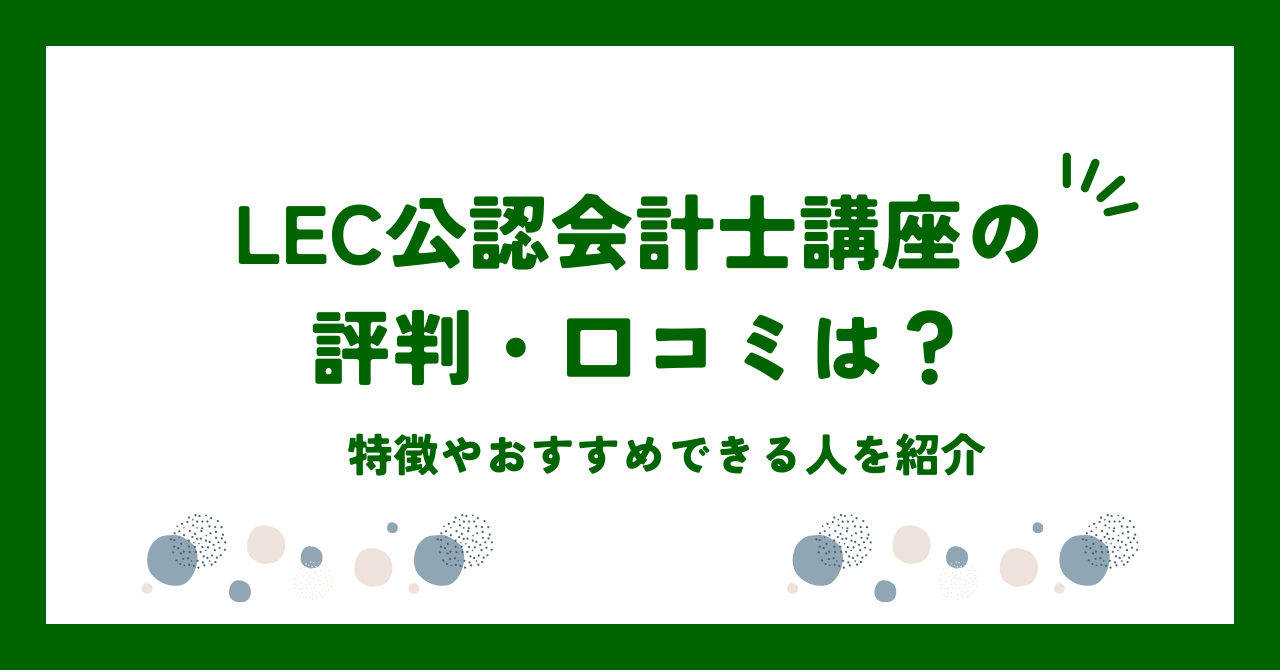 そこで本記事では、LEC公認会計士講座の評判・口コミを紹介します。
