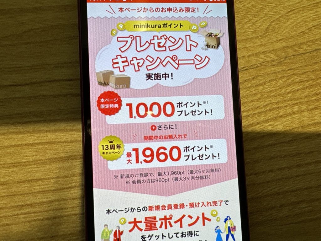 minikura公式サイトでキャンペーンを確認するとにかくお得に使いたい。損したくない!